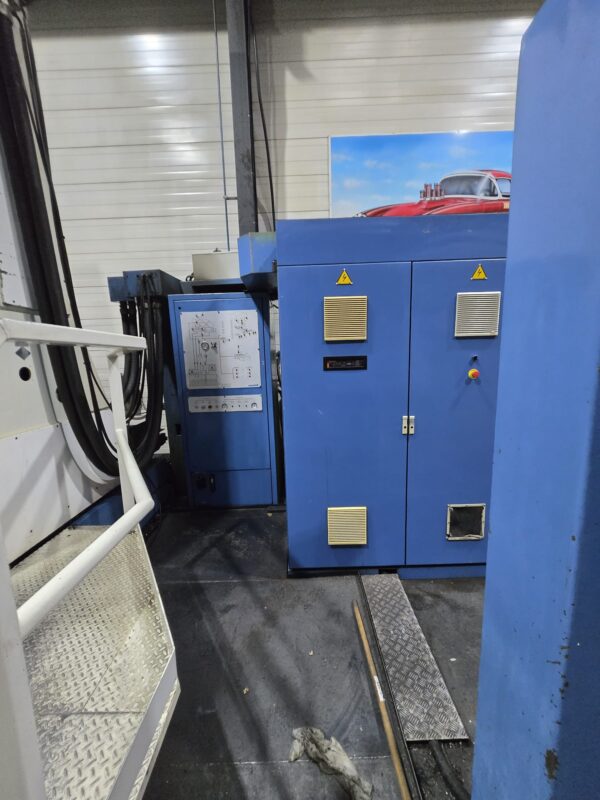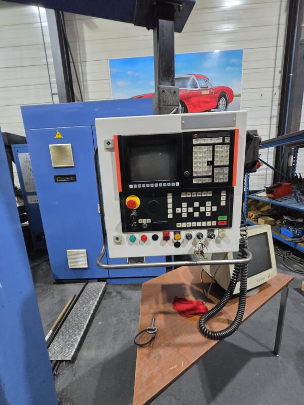 Broche horizontale et verticale Table : 2000 x 940 Plateau rotatif 1600 x 1400, 360 000 positions CN NUM 1060 Puissance broche 32KW, rotation 2960t/mn En fonctionnement A prévoir : changement écran Précision : 0.1mm |